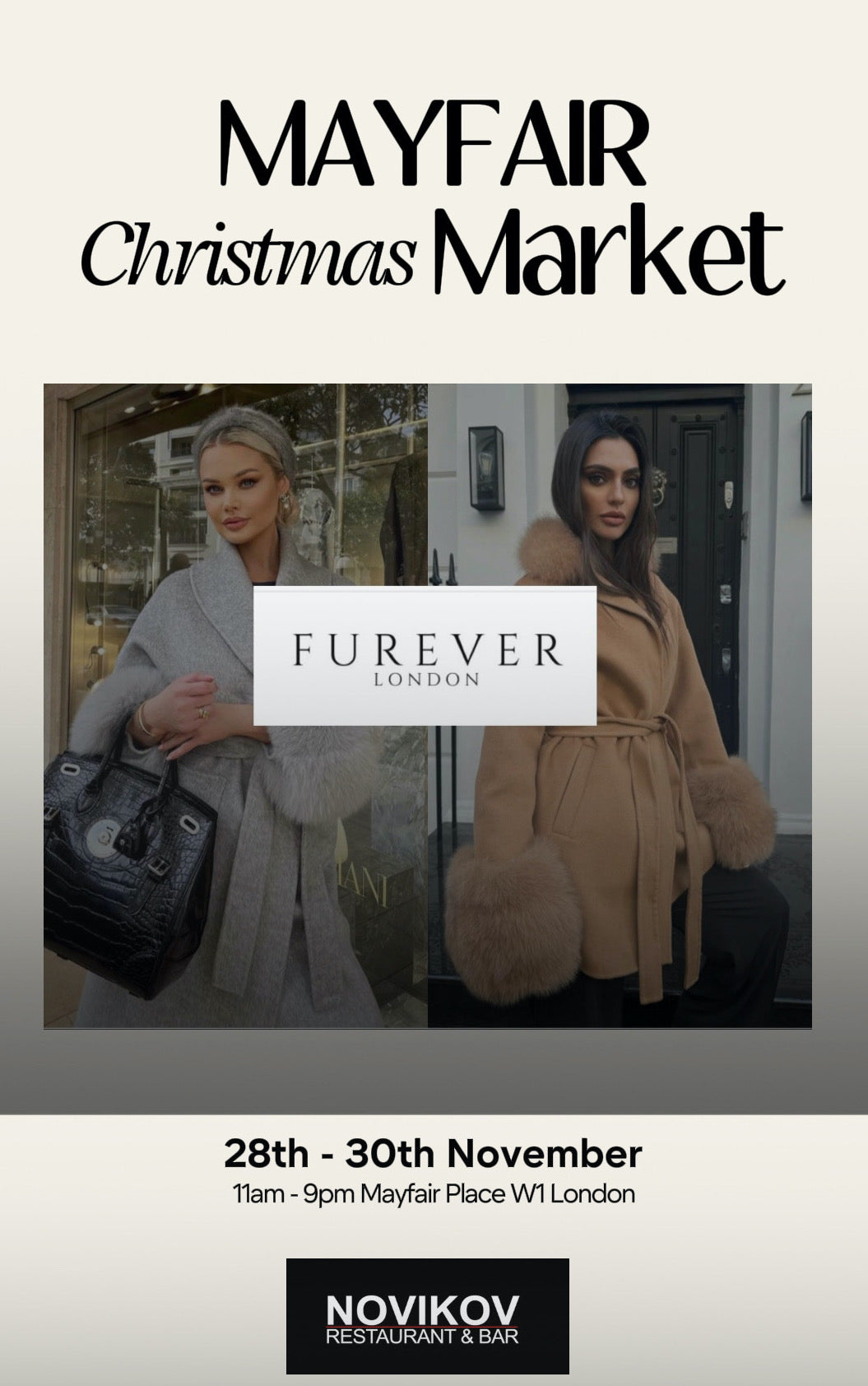 Join us in person at our exclusive pop-up store at Novikov Market, where luxury meets craftsmanship. Visit us from November 28th–31st to explore our full range of fur coats and accessories, and experience the elegance of Furever London up close. Don’t miss out on this opportunity to shop, meet our team, and enjoy personalized styling advice. We can’t wait to welcome you!