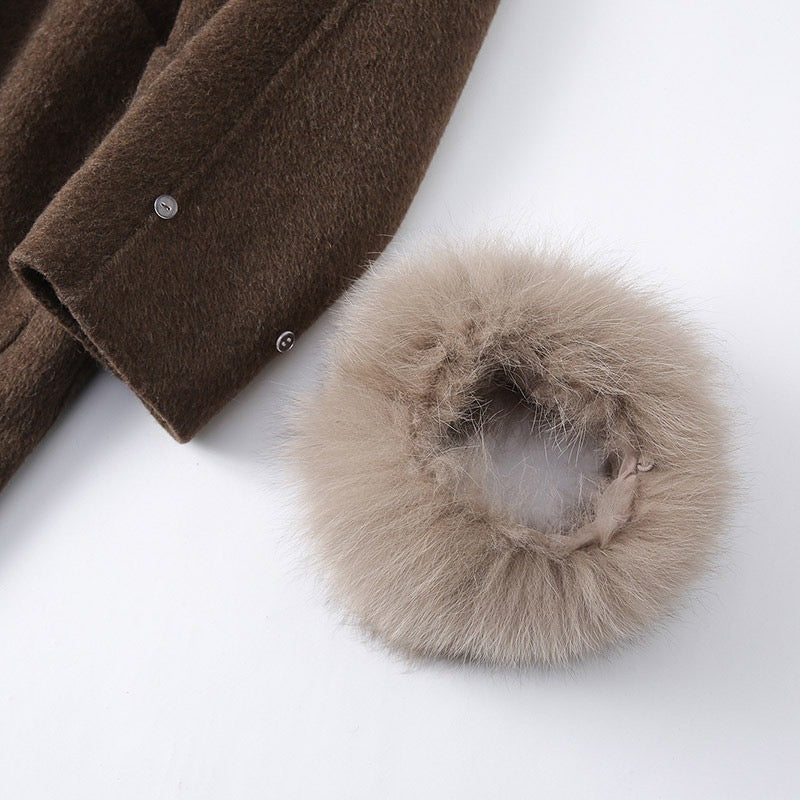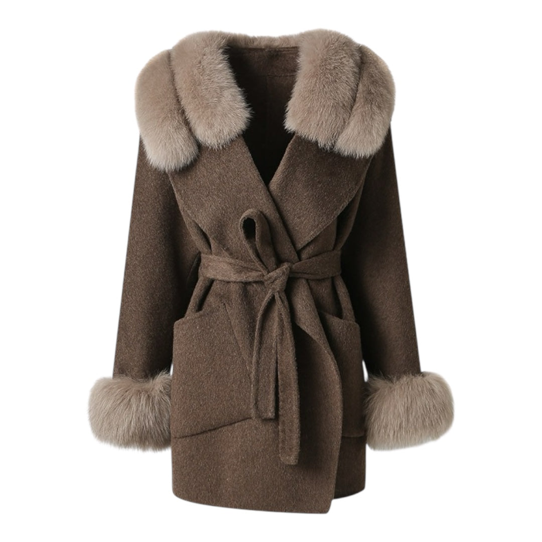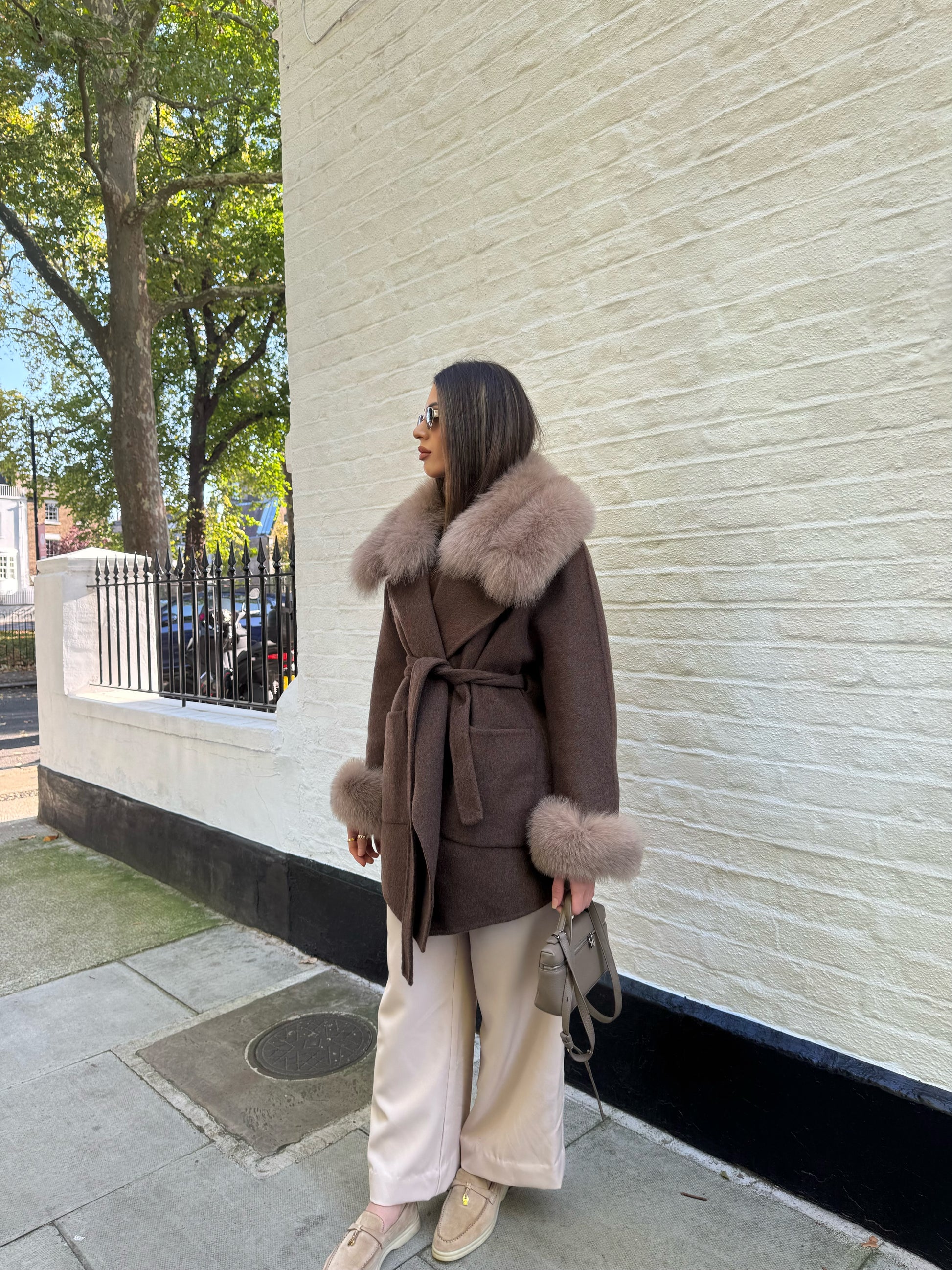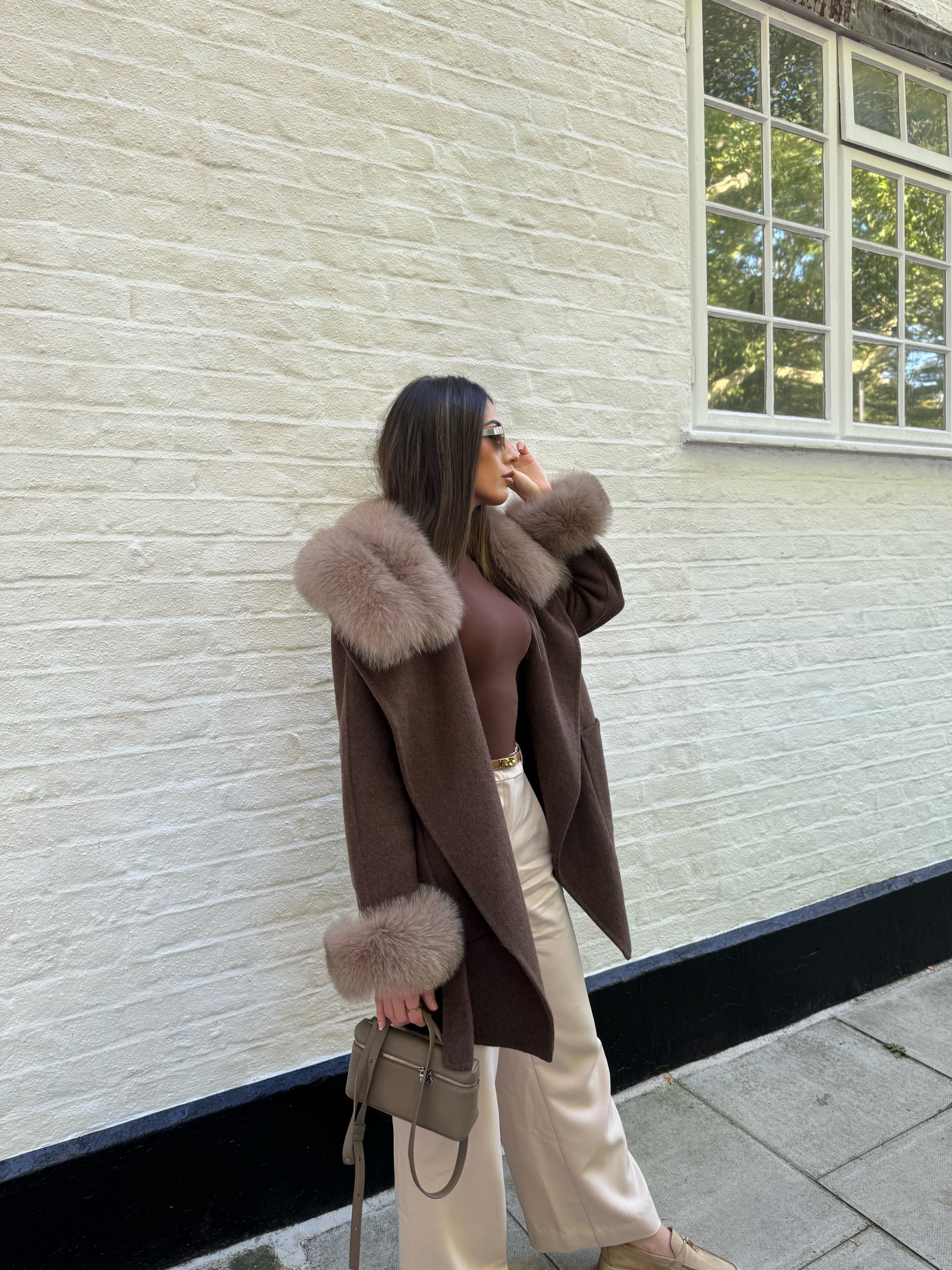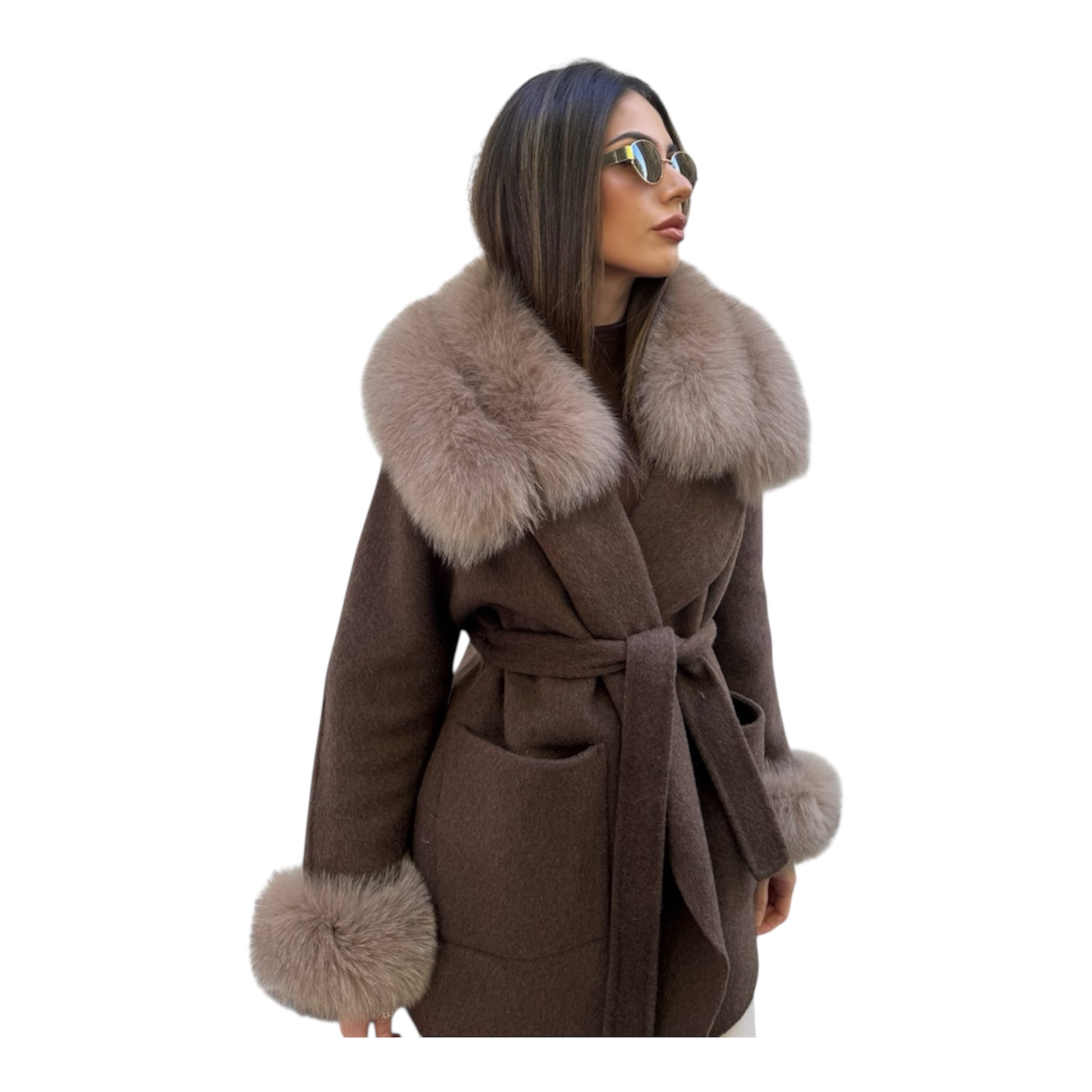 Wrap yourself in timeless sophistication with The Frankie Coat — Crafted from 100% virgin wool and accented with genuine fox fur, this statement piece combines warmth, texture, and effortless elegance.