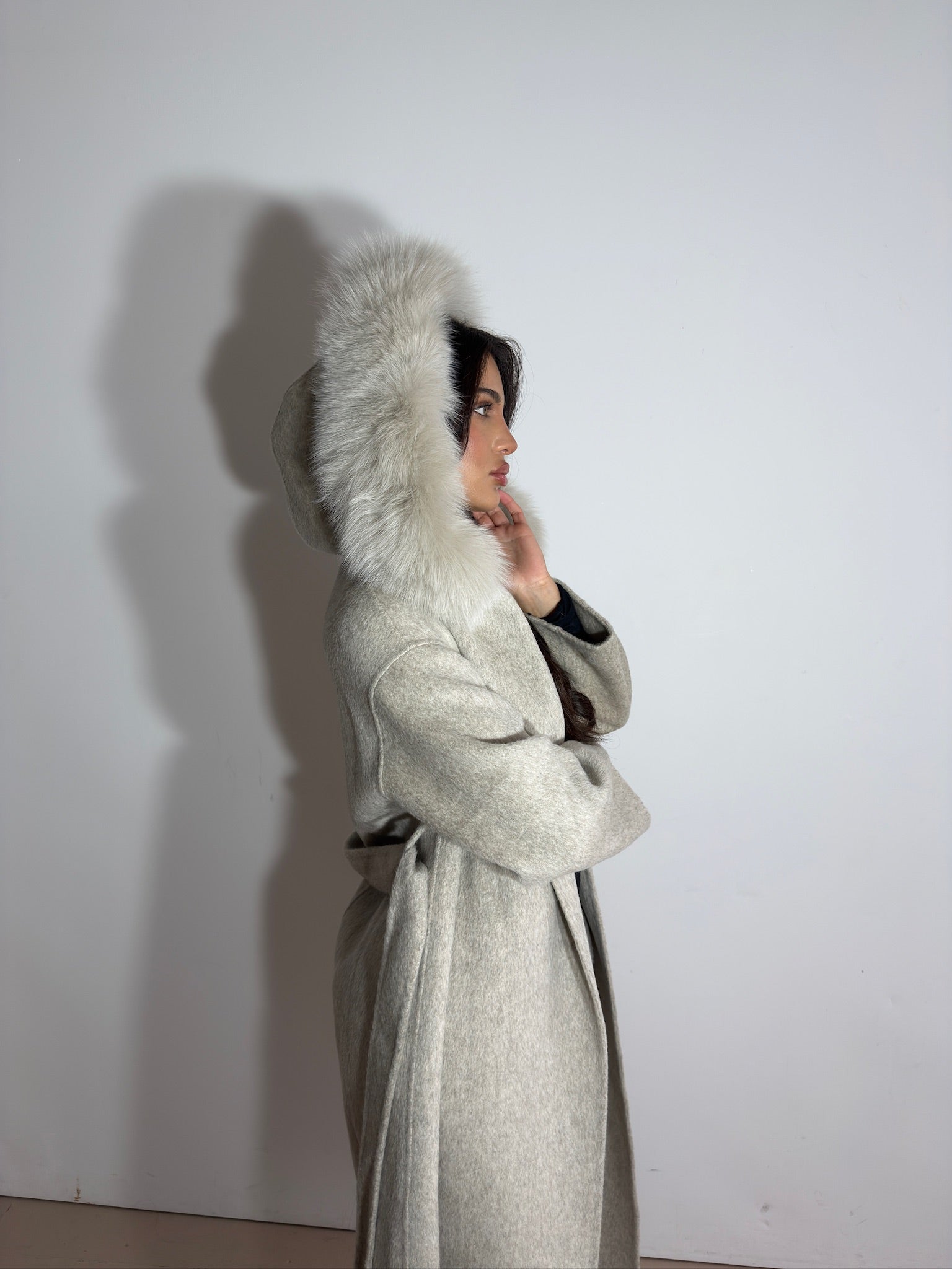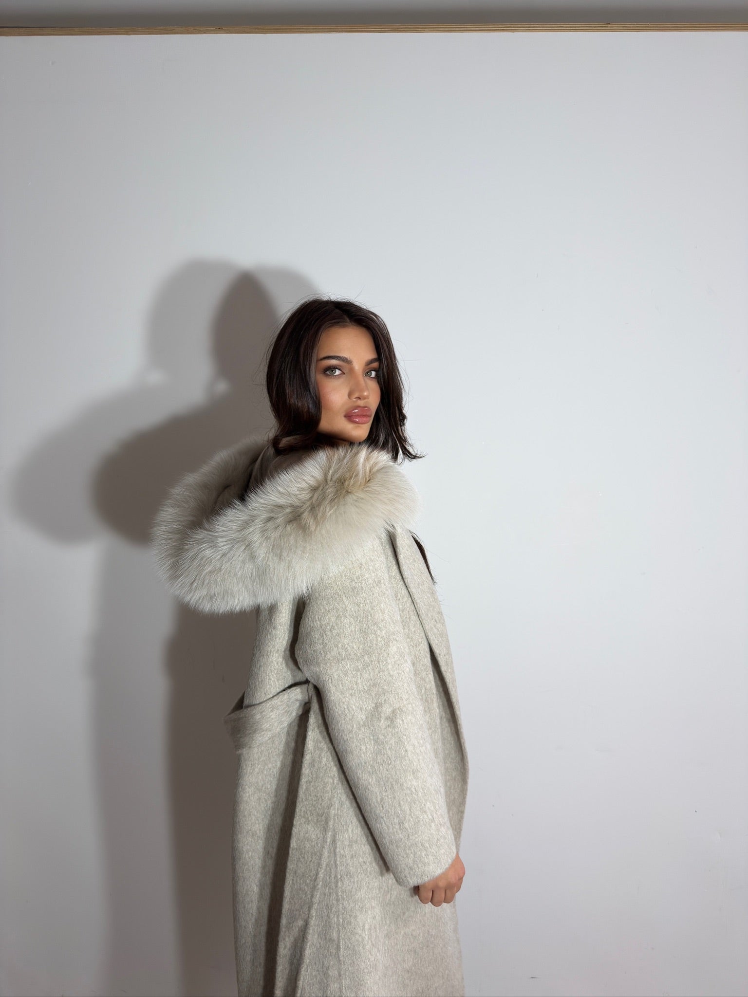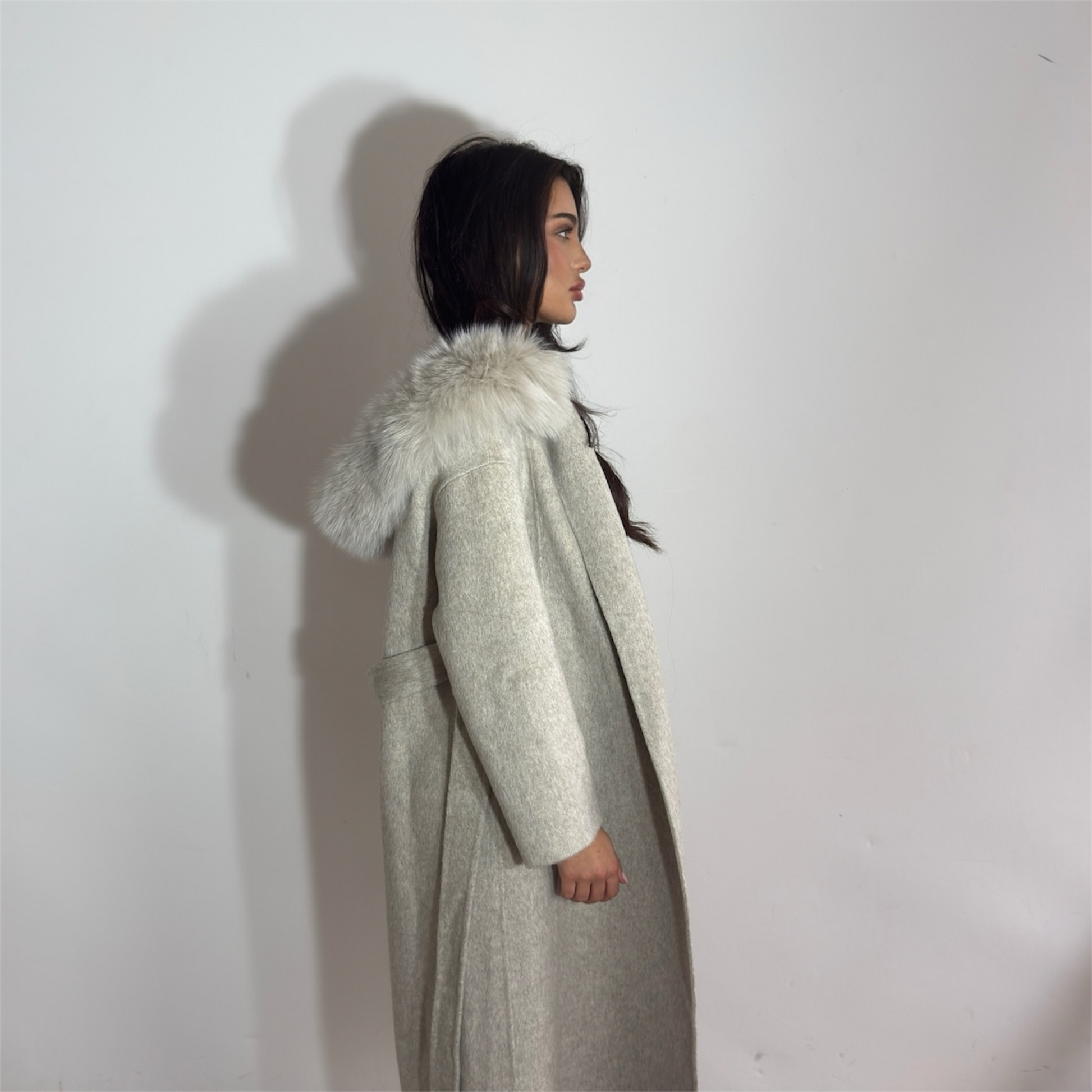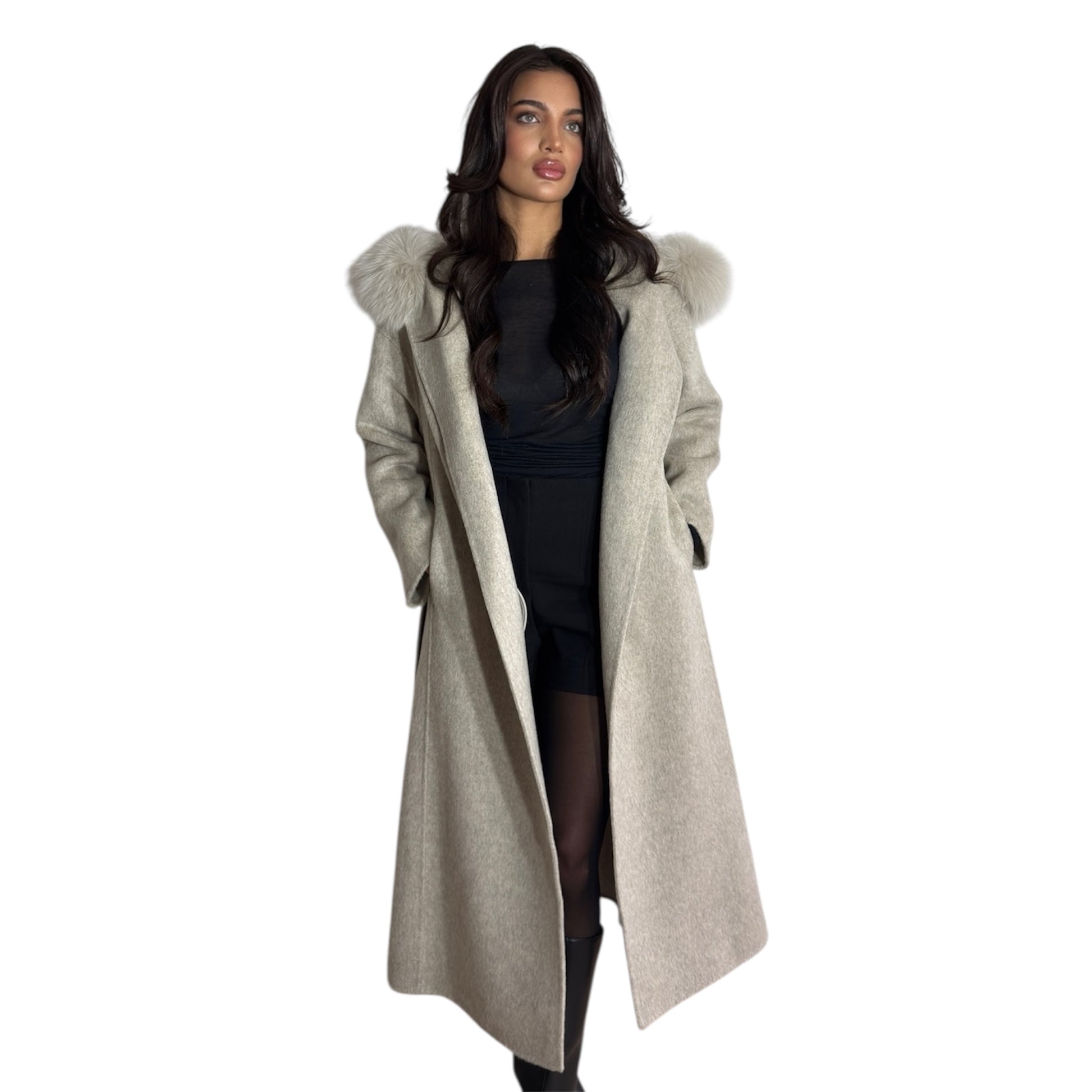 The Mila Coat blends luxury and warmth in a timeless design. Made from soft, premium wool in a classic cream shade, it features a plush fox-fur hood for added elegance and comfort. With its long, flattering silhouette, this coat is the perfect statement piece for cold-weather style.